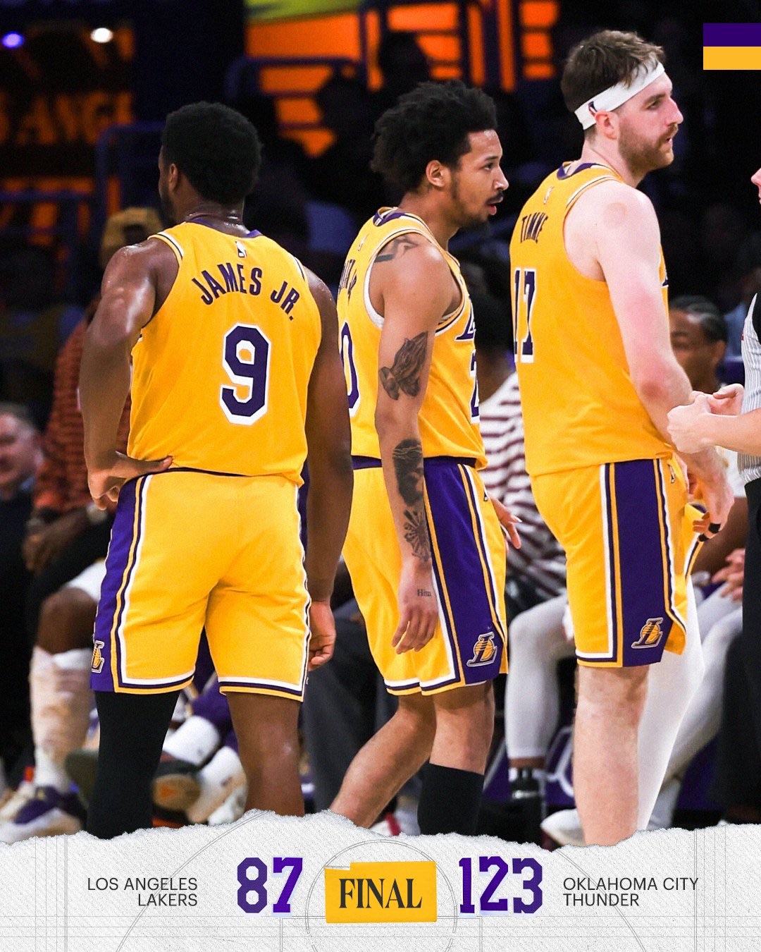 [流言板]湖人社媒分享本场比赛失利海报,常规赛战绩来到50胜29负